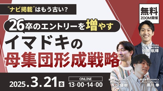 株式会社ABABA(本社:東京都目黒区、代表取締役:久保駿貴・中井達也、以下「ABABA」)と株式会社DINAMICA(本社:東京都渋谷区、代表取締役:濱田祐輔)は、26卒採用における最新の母集団形成戦略をテーマにしたオンラインセミナーを開催します。