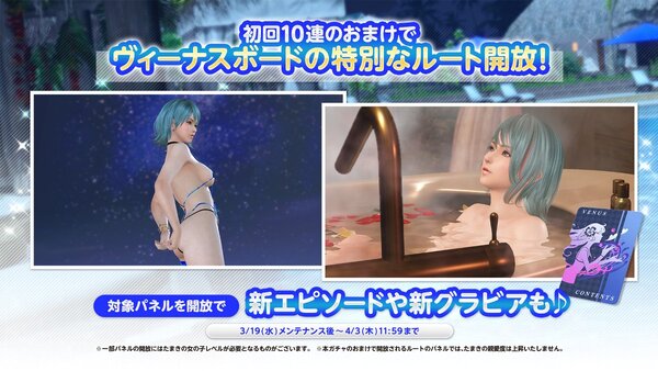 たまきのヴィーナスボードに新たなルートが追加される。新ルートではパネル開放の報酬として、たまきの特別な新エピソードや新グラビアを入手できる。