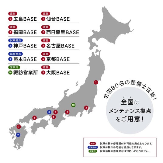VELMOは全国出張メンテナンス可能