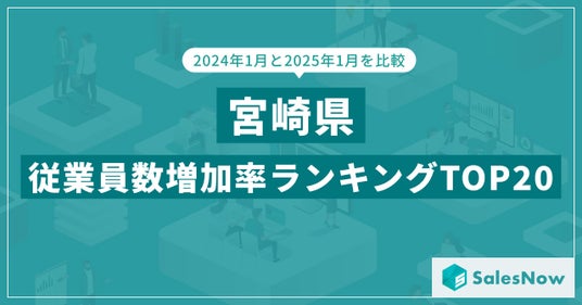 「誰もが活躍できる仕組みをつくる。」をミッションに掲げ、セールスチームの武器となるデータベース「SalesNow」を展開する株式会社SalesNow(本社:東京都渋谷区、代表取締役:村岡功規、以下「SalesNow」)は、国内550万社の企業情報を完全網羅した日本最大級のデータベース「SalesNow DB」より、宮崎県に本社を置く企業の2024年1月時点および2025年1月時点の従業員数データを分析し、従業員数増加率ランキングTOP20を発表しました。本ランキングは、各企業の成長スピードを可視化するものであり、新規雇用の創出や事業拡大の動向を明らかにしています。