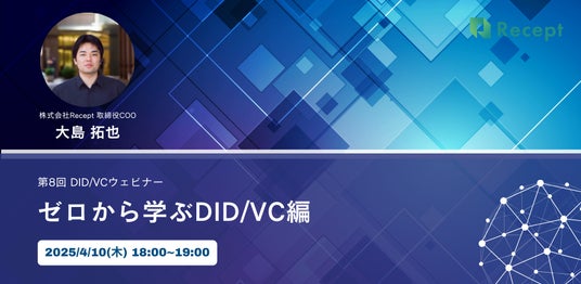 株式会社Recept(本社:東京都豊島区、代表取締役社長:中瀬 将健)はDID/VC技術に関するウェビナー(無料)を開催いたします。