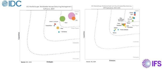 IFS、IDC MarketScape 2024-2025製造ERPおよび再製造管理ソフトウェア部門の2つのベンダー評価でリーダーに選出される