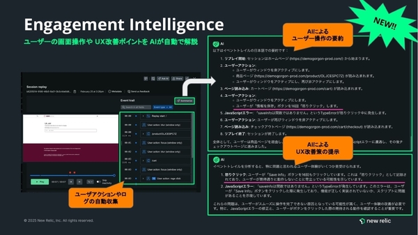 2つ目の新機能は、ユーザーの画面操作やUXの改善ポイントをAIが解説してくれる「Engagement Intelligence」だ。