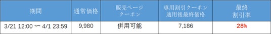 発売を記念し、21日より本製品の特別セールを実施します。クーポン適用で最大28%オフ という大変お求めやすい価格で提供いたしますので、この機会にぜひご利用ください。