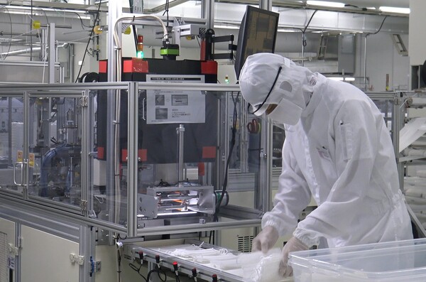 2020年2月中旬に、日本政府からの生産要請を受けたシャープは、2月28日に不織布マスクの生産を行うことを決定。生産設備を導入し、液晶パネルの生産を行っていた三重工場内のクリーンルームで生産。チリやホコリなどが極端に少ない清潔な環境で、3月24日から生産を開始した。