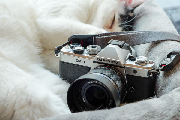 2025年の春は、久々に各社から新製品が続々登場したので、新製品で猫を撮るシリーズである。「COOLPIX P1100」「Sigma BF」に続く第3弾は、ミラーレスの「OM SYSTEM OM-3」だ。