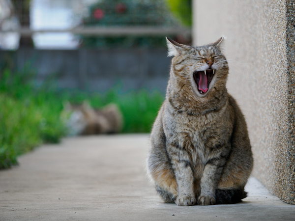 冒頭写真は、「40-150mm F4」のコンパクトな望遠レンズをつけて撮った神社猫のきなこさん。この日はなかなか近くに来てくれなかったので、ローアングルで狙ってたら大あくびをしてくれたのですかさず。