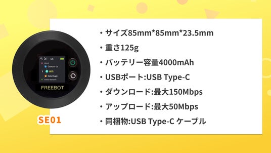 ・SE01:ロングバッテリーを搭載、長時間の連続利用が可能です。ビジネスからアウトドアユースまで幅広いシーンでご利用いただけます。
