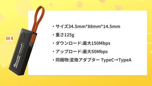 設定済みで電源ONで使えるという便利さに加え、さらにWiFi設定も必要のない端末「M4」を追加!