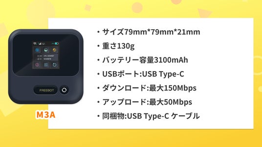 ・M3A:クラウドSIM技術により海外利用にも対応し、旅行や出張先でのSIM差し替え不要です。世界各地で安定した通信環境を実現します。
