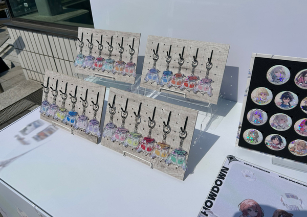 実際に会場に足を運んでみて感じたのは、ぶいすぽっ!は男女関係なく多くのファンがいるなということと、イベントのオリジナルデザインのTシャツを着ていたり、推しのグッズを身に着けていたり、中には大量の推しメンバーのバッジを付けたバッグを持っている人もいるなど、熱烈に応援しているファンもたくさんいるなということでした。
