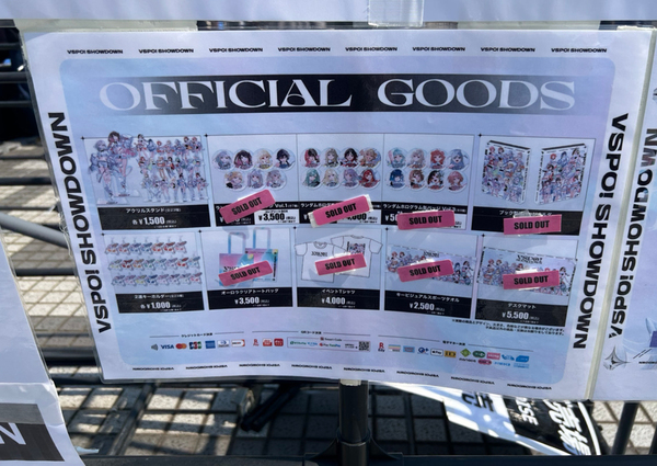さて、VSPO! SHOWDOWN powered by RAGEでは、コラボグッズやコラボフードも展開していました。コラボグッズは普段とは少し違う雰囲気の衣装とデザインになっているのが印象的でした。また、23日の午後にグッズ販売コーナーに行ってみたところ、売り切れのグッズも多く、改めてぶいすぽっ!の人気すごいなと感じました。