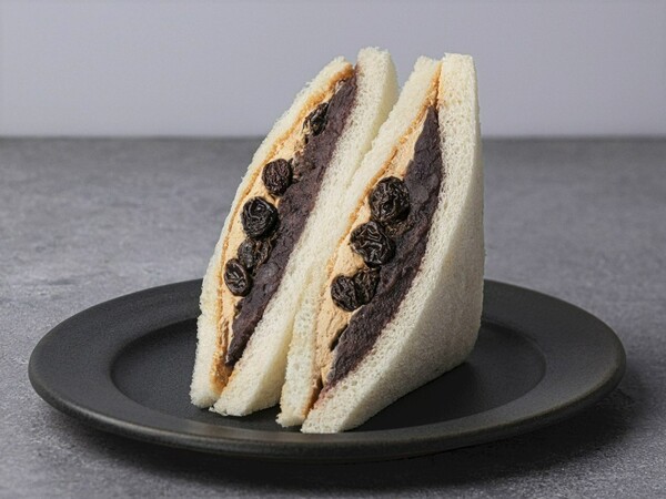 サンドイッチ専門店 「PREMIUM SAND+CAFÉ メルヘン」とスイーツショップ「an and an」のコラボサンド。きめ細かなサンドイッチ専用の食パンに「an and an」のあんこを挟み、「メルヘン」自慢のラムレーズンと焦がしキャラメル風クリームを組み合わせました。あんこの風味にラムの香りやキャラメルのほろ苦さが楽しめます。
