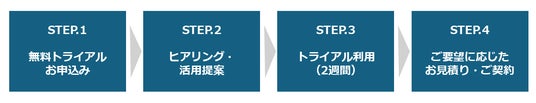ご契約までの流れは、以下の4ステップになります。まずは無料トライアルにお申込みください。