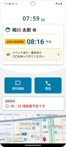 ・施設職員は、送迎状況をリアルタイムで地図上で確認可能