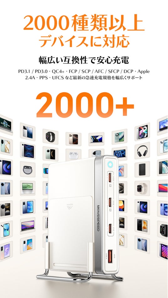 ■どんなデバイスでも最適充電MoveBoostは、2000以上のデバイスの急速充電規格と互換性あり。