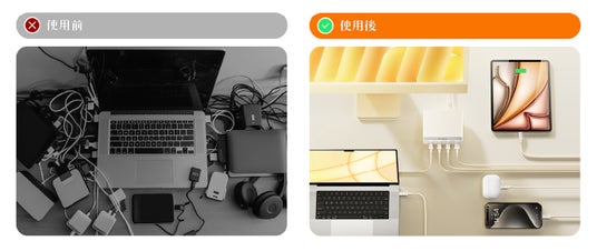 MacBook Proやスマートフォン、イヤフォンなど、あらゆるデバイスを急速充電。