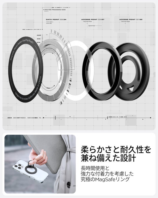 MagSafe対応 スマホリング 「デュアルポップ・マグフィット」(両面MagSafe)