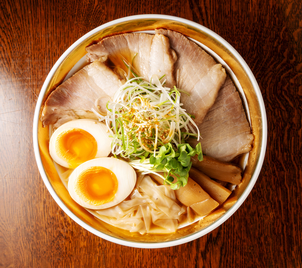 味わい豊かなチャーシューと、自慢の自家製ワンタン、シルク麺、数種の煮干しとアゴ、昆布、鶏、野菜の旨味を濃縮した醤油スープが渾然一体となった「至高の一杯」を目指している。