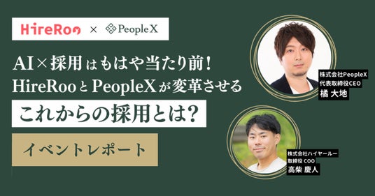 エンジニア組織向けプラットフォームを提供する株式会社ハイヤールー(本社:東京都渋谷区、代表取締役:葛岡宏祐)が提供するAI時代のスキル面接サービス『HireRoo(ハイヤールー)』( https://hireroo.io )は、株式会社PeopleX 代表取締役CEOの橘大地様をお招きし、「AI×採用はもはや当たり前!HireRooとPeopleXが変革させるこれからの採用とは?」をテーマにイベントを共同開催しました。