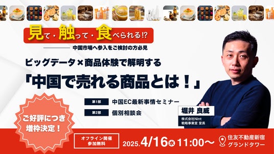 株式会社Nint(本社:東京都新宿区、代表取締役:吉野順子、以下「Nint」)は、中国EC市場の最新動向を「ビッグデータ解析」と「商品体験」を通じて体感いただけるオフラインイベント「中国市場の今がわかる ビッグデータ解析×商品体験ワークショップ」を、2025年4月16日(水)に東京にて開催いたします。