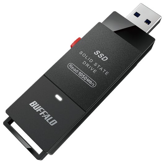 本商品はUSB3.2(Gen 2)対応により、リード速度約1,050MB/s 以上、ライト速度約900MB/s以上の高速データ転送を実現するスティック型の外付けSSDです。付属のType-C変換アダプターを使うことで接続できます。exFAT形式にフォーマット済みのため、すぐにお使いいただけます。iPhone・iPadの写真と動画をかんたんにバックアップできる無料アプリケーション「写真バックアップ」との動作確認済みです。