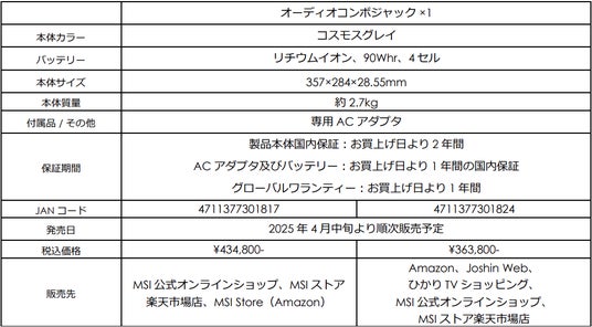 この度、エムエスアイコンピュータージャパン株式会社は、MSIゲーミングノートPC 2025年モデルに「GeForce RTX(TM) 5070 Ti Laptop GPU」搭載モデルをラインアップに加え、「Vector-16-HX-AI-A2XWHG-0251JP」「Vector-16-HX-AI-A2XWHG-0853JP」「Stealth-A16-AI+A3HWHG-6459JP」を2025年4月中旬より順次販売開始いたします。