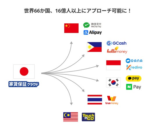 そこでリースは、家賃の支払い手段として中国国内で利用率が高いメッセンジャーアプリ「WeChat」の決済機能「WeChat Pay」や中国、香港、タイなど世界66か国、16億人以上に利用されている決済機能「Alipay+」を導入しました。これにより、借り手である外国人入居者が日本の金融機関の口座を持っていなくても、毎月の家賃を支払いやすくなります。