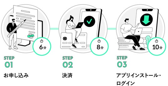 03plusは面倒な契約手続きや工事は一切不要。Webでお申し込み、アプリをインストールするだけで、最短10分で03番号などの市外局番が取得できます。