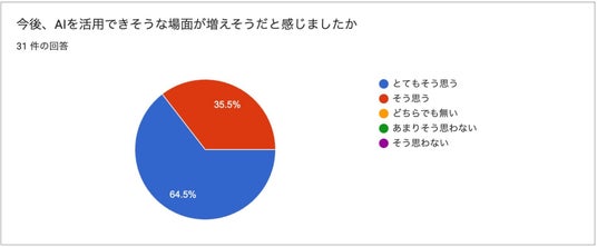ワークショップを受講後、「AIを活用できそうな場面が増えそう」だと感じた方は100%