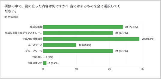 ・「日ごろの業務において、生成AIを活用できる場面、また活用することで業務負担が軽減できることについて考えることができた。」