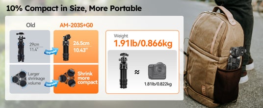 SIRUI AM203S+G0は、携帯性と安定性の両方を兼ね備えた優れた三脚ですね。15kgの耐荷重に加えて、折り畳み時のサイズが約26.5mというのは、旅行や外出先で使うには非常に便利です