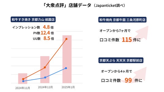 中国最大級の生活情報プラットフォーム「大衆点評」の国内正規代理店である株式会社Japanticket(本社:東京都渋谷区、代表取締役:田中 宏彰)は、京都で複数の飲食ブランドを展開する株式会社力は宿る(本社:京都府京都市、代表取締役:谷村 昌樹)に、2023年11月より「大衆点評」および「RED」を活用したインバウンド集客サービスの提供と運用支援を開始、この度、その導入成果についてお知らせします。