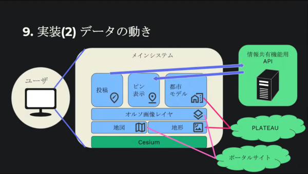 「このような賞をいただいて大変光栄です。ハッカソンからここまで開発を続けてきました。PLATEAUやGISに関するいろいろな情報がPLATEAU公式サイトにまとまっており、こうした情報が日本語でまとまっているのはエンジニアとして大変ありがたい。あらためて、国土交通省をはじめ、PLATEAUコミュニティのみなさんに感謝申し上げます。自分たちも貢献していけるように、今後も開発していきます」