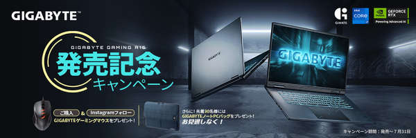 さらに、発売記念キャンペーンとして、7月31日までに購入しGIGABYTEのInstagramをフォローした人にはゲーミングマウス「M6900」をプレゼント。また、先着30名には限定ノートPCバッグも提供される。詳細はGIGABYTEの公式キャンペーンページで確認できる。