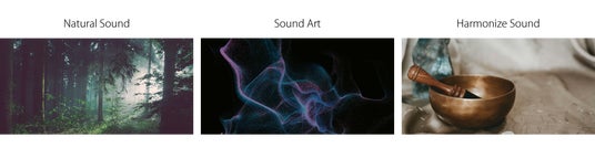 鳥のさえずりや川のせせらぎなどの自然を感じるサウンド、サウンドアーティスト「poropiore(Yujin Fujiwara)氏」が本プロダクトのために制作したオリジナル楽曲、スリットドラムやガムランなどの民族楽器を使用したサウンドから、その時の気分に合わせて自由に楽曲を選択できます。