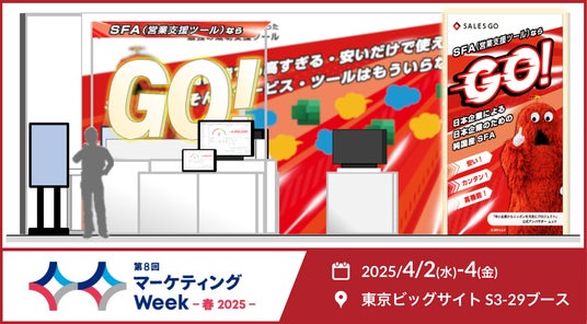 SFAとインサイドセールスで営業のデジタル化と売上アップを支援するSALES GO株式会社(所在地:東京都品川区、代表取締役社長:内山 雄輝、以下SALES GO)は、2025年4月2日(水)~4日(金)、東京ビッグサイトで開催される「マーケティングWeek -春 2025-」内「営業支援 EXPO」に出展いたします。ブースでは、最新のマーケ・営業支援ツールやノウハウ、お客様事例を多数ご紹介いたします。