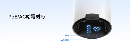 Deco X50-Outdoorは、AC給電に加え、PoE(Power over Ethernet)給電にも対応しており、電源の確保が難しい屋外環境でも柔軟に設置可能です。PoE対応のギガビットポートを2つ搭載しているため、LANケーブル1本でデータ通信と電源供給を同時に実現し、余分なケーブルや電源アダプターが不要。配線の手間を最小限に抑えながら、スッキリとした設置が可能です。