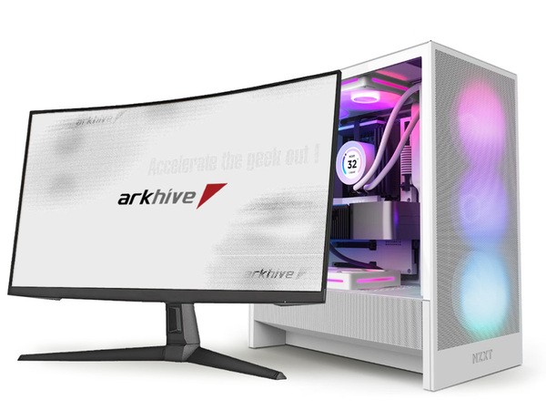 豊富な最新パーツを揃えるパソコンSHOPアークのBTOパソコンが「arkhive Gaming Custom」シリーズだ。シングルレームLEDファンをフロントに備え、カラフルなビジュアルが楽しめるケースを採用している。強化ガラス製サイドパネルにより、内部のパーツの動作をチェックしやすく、光る様子を確認しやすい。