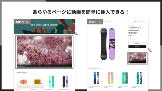 「シンプル動画埋め込み|お手軽どこでも動画挿入」を使うと、ストア上のあらゆるページに動画を埋め込むことができます。TOP ページでブランドイメージの動画を表示したり、商品ページでマニュアル動画を表示したりするのに役立ちます。