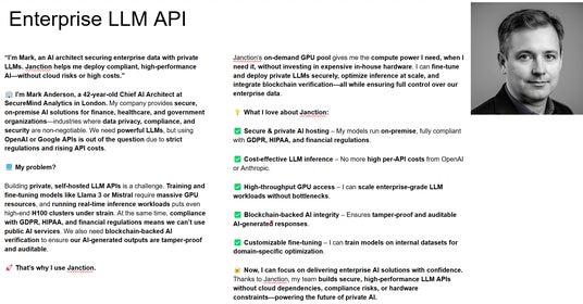 「JANCTION」は生成AIを活用した製品等を開発する中小企業向けに、正確で追跡可能なデータ入力を提供し、個人情報やプライバシーを保護する独自のブロックチェーン「JANCTION Layer 2」を開発運営しています。また、将来的な枯渇が懸念される計算資源(GPU)を分散再配置によって新たな価値を提供する分散型GPUクラウド「JANCTION GPU Pool」を展開することで、生成AI製品の品質向上、コスト削減、Web3へのシームレスな展開を支援しています。