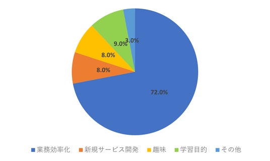 - 新規サービス開発、趣味、学習目的は10%を下回った