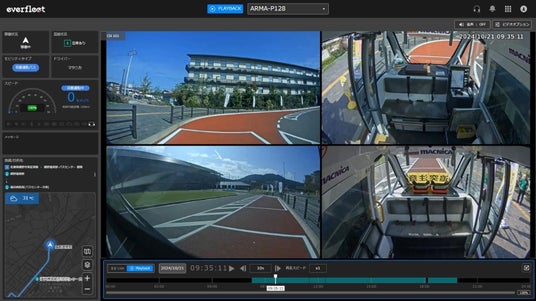 everfleetではモビリティの位置情報や車内外のカメラ映像に加え、車速・ステアリング・バッテリー残量などの車両データを統合して一元的に可視化し、信号機などの交通インフラと協調した外部データとの連携も可能です。これにより、運行状況を遠隔地からリアルタイムに把握し、安全・安心に自動運転モビリティを運用することができるようになります。