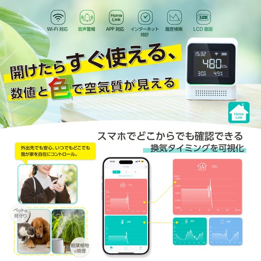 ユーザー数52万人超のスマートホーム統合アプリ「HomeLink」(ホームリンク)との連携機能も継承し、CO2濃度の計測値に応じて自動で換気扇やサーキュレーターをONにし、自動換気を行うスマート操作を可能にします。