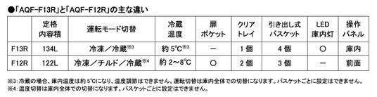 冷凍・チルド・冷蔵の3温セレクトができるファン式冷凍庫の新モデル「AQF-F12R」を、2025年4月11日(金)に「AQF-F13R」と同時発売します。
