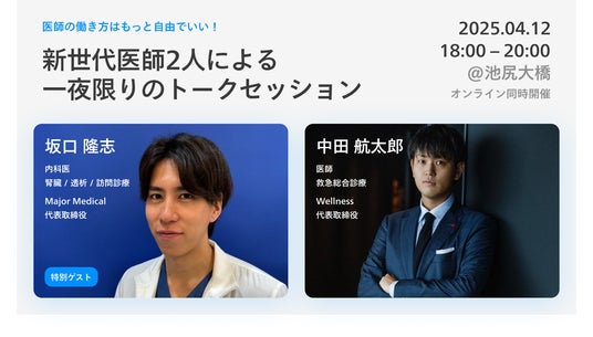 - テーマ:「医師の働き方はもっと自由でいい!新世代医師2人による一夜限りのトークセッション」