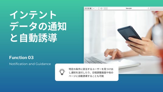 自動プレゼン内でのヒアリング結果や、プレゼンの反応データから、特定の条件に該当するユーザーを見つけ出し、通知を送付することができます。加えて、特定のユーザーを日程調整画面等に自動誘導することもできます。これにより、別途フォローすべき相手や要確認の視聴者をリアルタイムで把握/対応する事が出来るようになります。