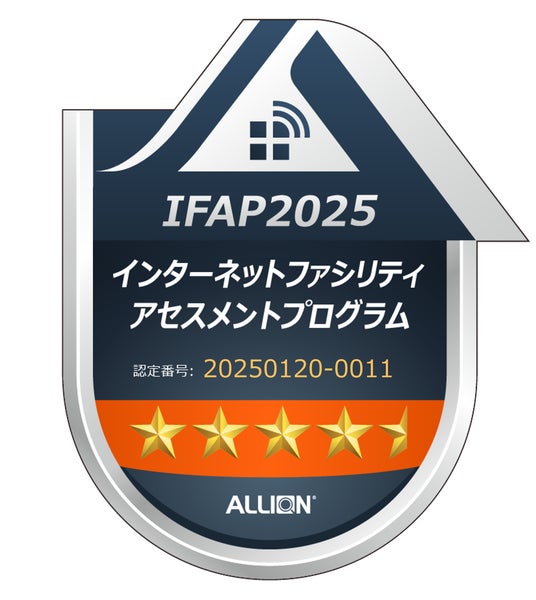 「IFAP」とは30以上の規格標準団体の認証試験を実施しているアリオン株式会社が提供するグレード認定サービスです。インターネット利用のための設備性能と利便性を評価することにより、快適なネット環境の選択を容易にする指標を集合住宅の居住者に提供し、高品質なインターネット回線の普及を促進することを目指しています。