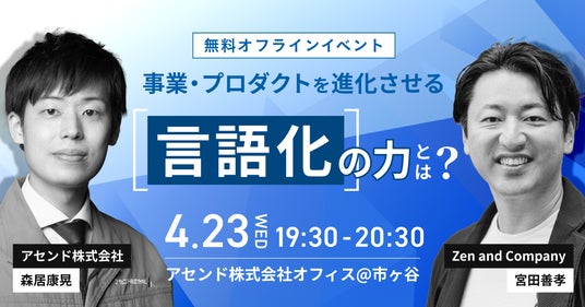 物流DXを推進するアセンド株式会社(本社:東京都新宿区、代表取締役:日下瑞貴、以下「当社」)は、事業推進・プロダクト開発において不可欠な「言語化」の力について、Zen and Company代表の宮田善孝氏をお招きし、対談形式でのイベントを開催することをお知らせいたします。本イベントでは、業界課題を解決するVertical SaaSにおいて、「言語化」がどのように事業やプロダクトの進化に寄与するのかを深く掘り下げます。