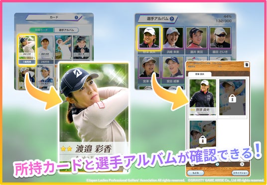 女子プロゴルファーの魅力的なワンシーンを収めたデジタルカードをコレクションできる機能です。